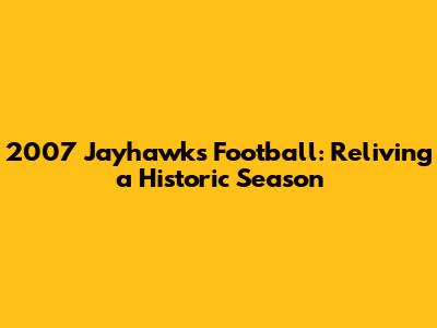 2007 Jayhawks Football: A Season To Remember
